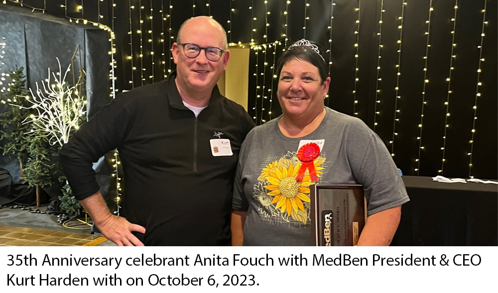 Fouch added that while enjoying every job she’s held during her MedBen career and learning from each opportunity, her current position is her favorite: “The Accounting Department is truly where I feel my knowledge and experience fits best.” She also thanked MedBen, her coworkers and friends for 35 great years.
