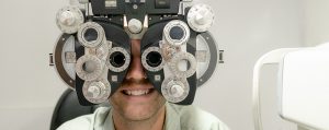 Young,Man,Examining,Eyes,With,Optometrist,To,Make,Glasses,,Professional