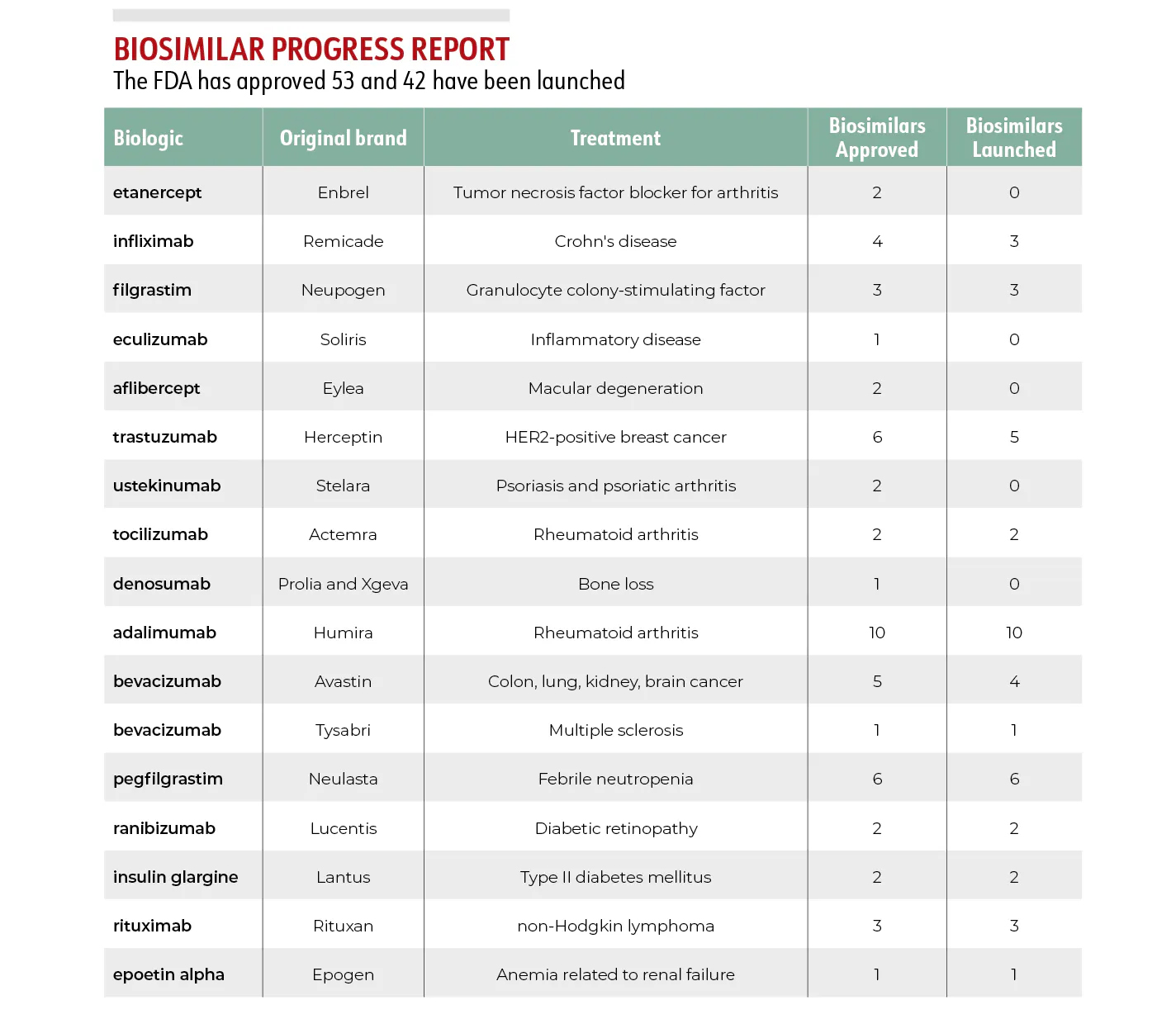 Managed Healthcare Executive has compiled a Progress Report listing every biosimilar currently approved by the FDA.
