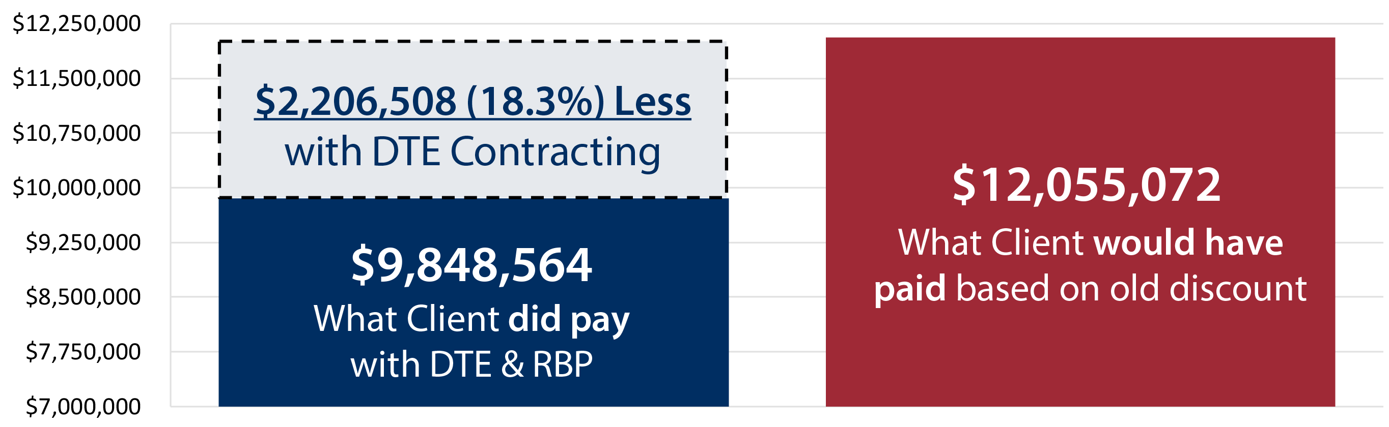 By comparing what the Client would have paid based on their prior PPO discounts from January 2019 through July 2022, the Client has so far saved $2.21 million – that represents 7.1% of paid medical during the 43-month period.