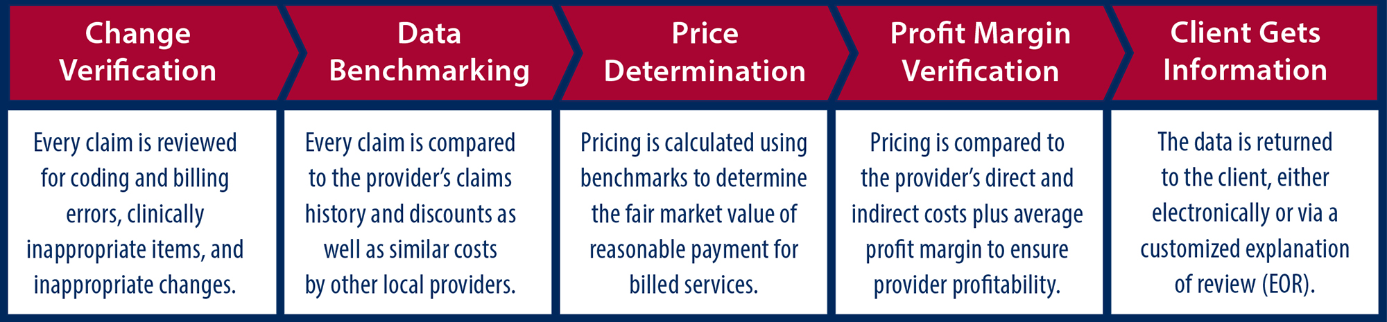 MedBen’s Fair Market Reimbursement combines the best aspects of PPOs and reference-based pricing by evaluating all types of claims to determine the appropriate provider payment. Using national market data from millions of claims, we establish the right payment for billed services.