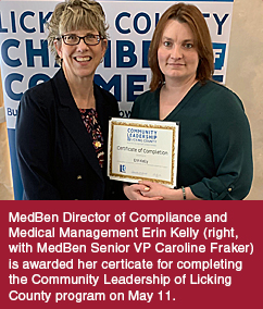 Kelly completes community leadership programMedBen Director of Compliance and Medical Management Erin Kelly recently completed the Community Leadership program offered through the Licking County (OH) Chamber of Commerce. The nine-month program fosters the intellectual growth of local leaders by strengthening their management skills and expanding their community knowledge.