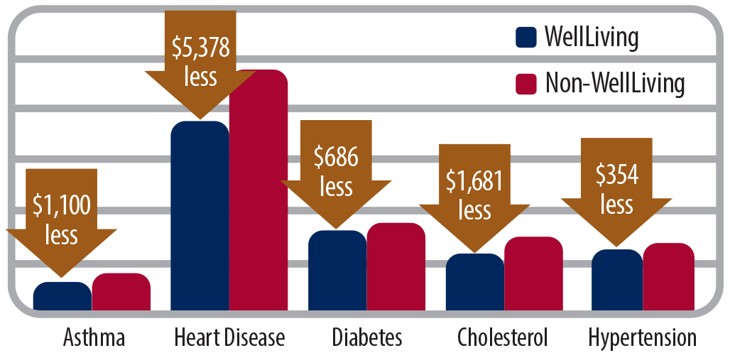 Through early detection and prevention of chronic conditions, MedBen WellLiving clients spend an average of 7.6% less compared to those who don’t use WellLiving.