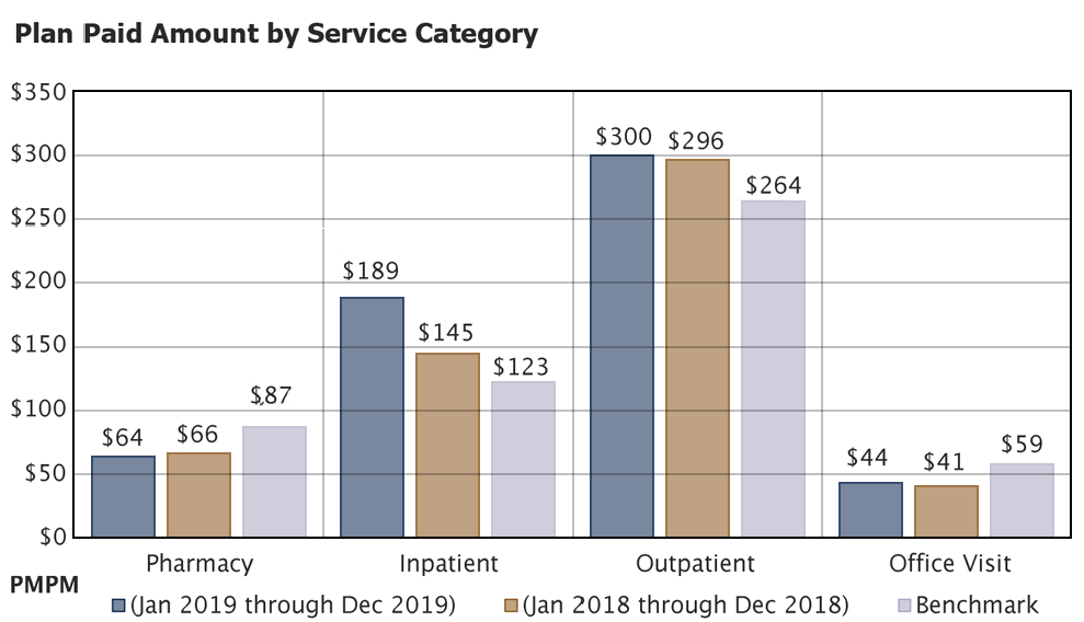 The MedBen Analytics online employer dashboard offers benchmarking capabilities that enable you to compare your data against MedBen’s block of business as well as national norms. With benchmarks, you get a true measure of how your plan stacks up.