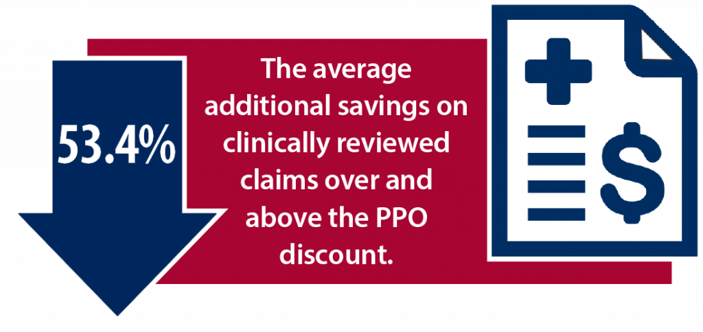 In 2020, MedBen clients saved on average an additional 53.4% on targeted claims through our forensic claims review. These savings are in addition to any PPO discounts.