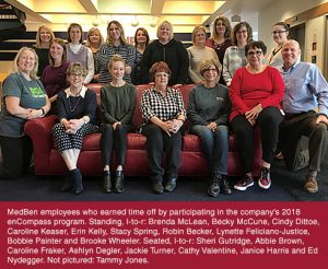 MedBen employees who earned a full day vacation include: Robin Becker, Ashlyn Degler, Caroline Fraker, Sheri Gutridge, Janice Harris, Tammy Jones, Caroline Keaser, Erin Kelly, Becky McCune, Brenda McLean, Jackie Turner and Cathy Valentine.
