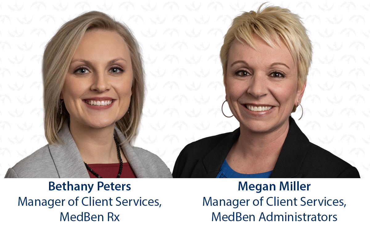 MedBen is pleased to announce the promotions of two long-serving members of our Client Services team. Megan Miller has been named Manager of Client Services for MedBen Administrators, and Bethany Peters has been named Manager of Client Services for MedBen Rx.