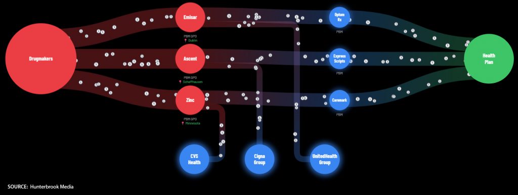 An extensive investigation by Hunterbrook Media sheds new light on how the nation’s three largest PBMs may be using little-known affiliated entities – effectively middlemen to the middlemen — to quietly retain billions of dollars that employers and health plans never see.
