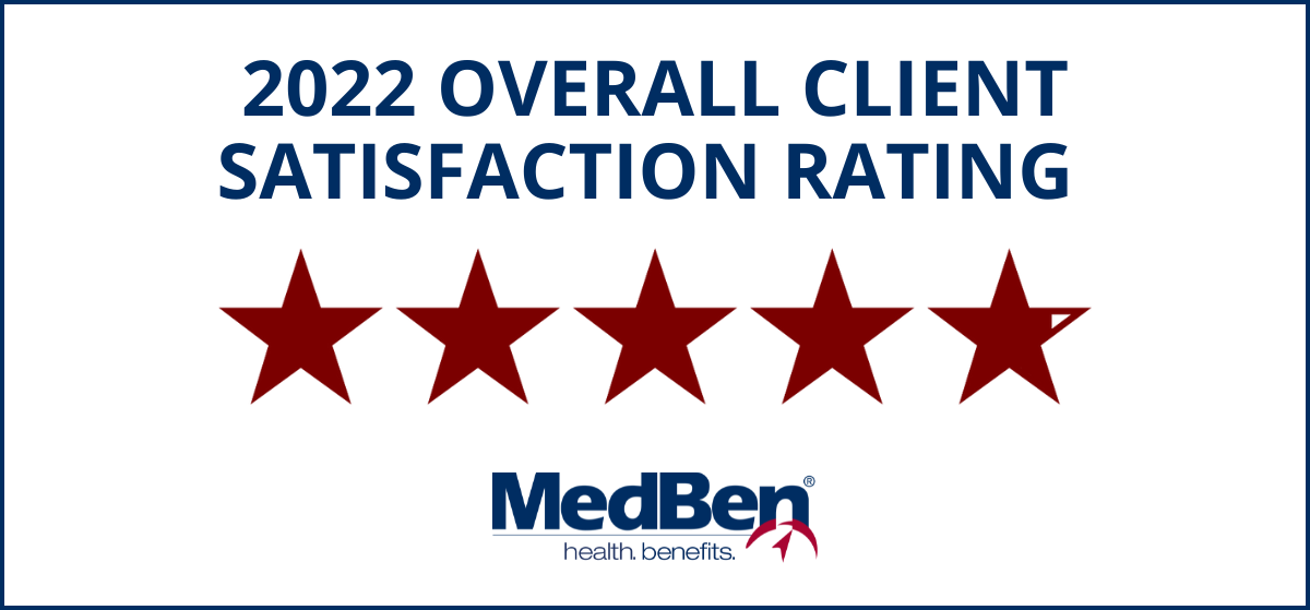 Here are results from MedBen Client Satisfaction Surveys received in 2022 (rating averages based on a 1-to-5 scale):